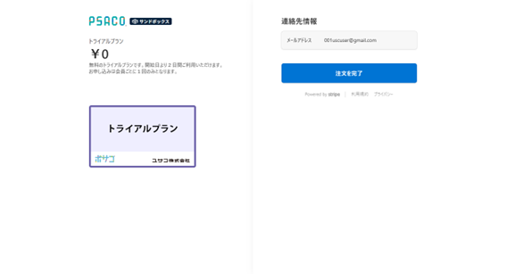 無料トライアルの開始日はStripe画面に遷移する前に指定できますが、Stripe画面に遷移し「注文を完了する」を押下した後に変更することはできません。予めご了承ください。