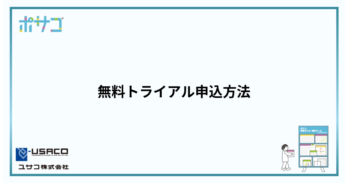 - 無料トライアルはポサコ会員登録後にご利用いただけます。お申込み前に、下記の「無料トライアルについて」をご確認ください。