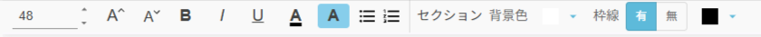 現在アクティブになっているテキストエリアのフォントサイズを5ptごとに拡大することが可能です。 - フォントサイズ変更(縮小)