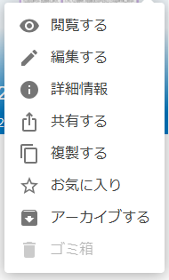 - 各ファイルの右肩にある、「…」ボタンをクリックするとメニューが表示されます。