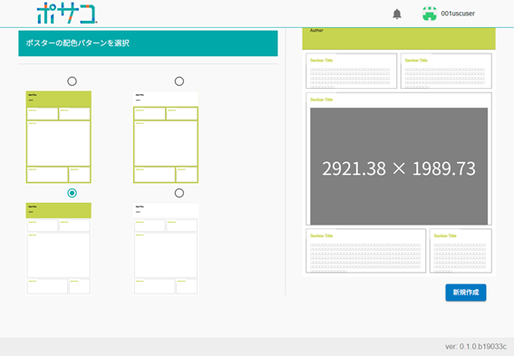 - 上記指定後、テンプレートと全体の配色デザインを選択し、編集ファイルの新規作成を行います。