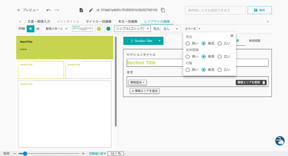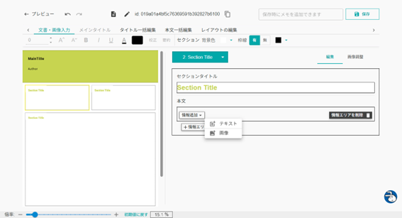 - 各コンテンツの入力が完了したら、レイアウト編集、一括編集機能で、ポスター全体のレイアウトを調整しましょう。