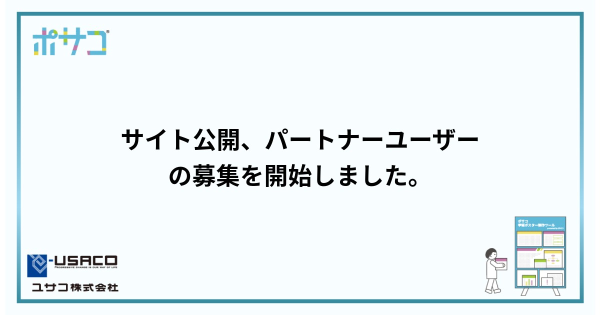 この度、ユサコ株式会社は本サイトにて学術ポスター制作ツール「ポサコ」のパートナーユーザー募集を開始しました。