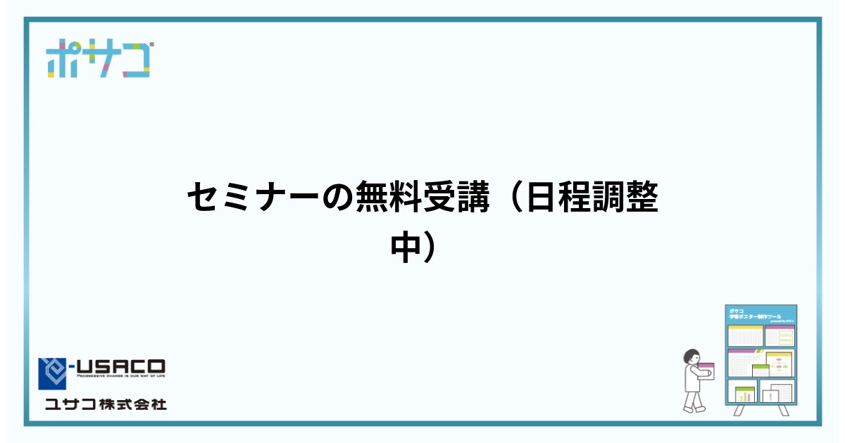 セミナーで学んだデザインやビジュアライゼーションの知識は、ポサコでのポスター制作にそのまま活かせます。ツールと知識の両面から、研究発表をサポートします。